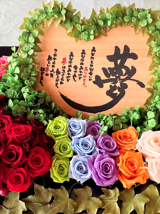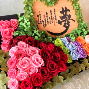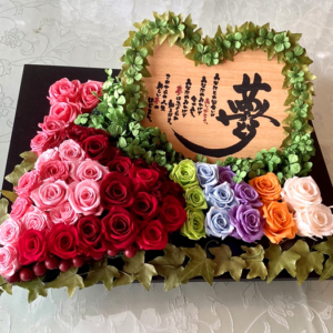 毎回変わるテーマは花の枠にとどまらず、プリザーブドフラワーの可能性を常に探求しています。