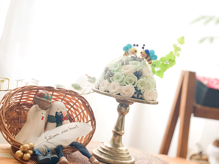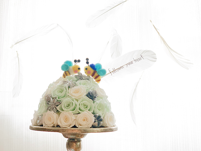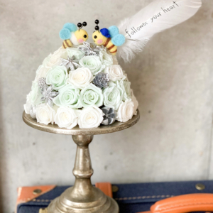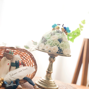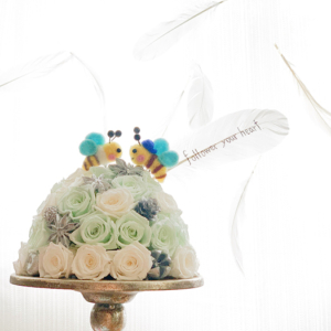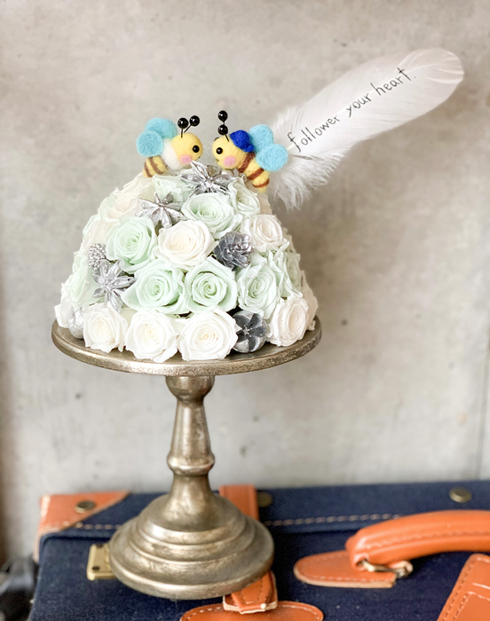 毎回変わるテーマは花の枠にとどまらず、プリザーブドフラワーの可能性を常に探求しています。