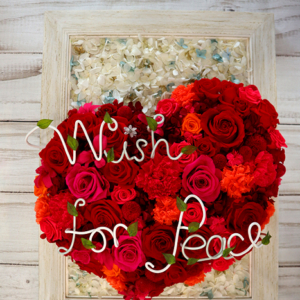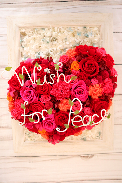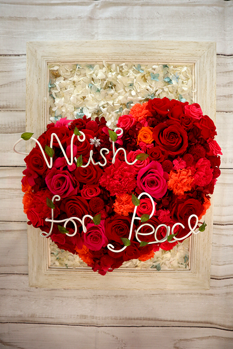 現実に起きている戦争に心が痛み、世界の平和を願わずにはいられません。人々の熱い愛が届きますようにとの思いを込めました。