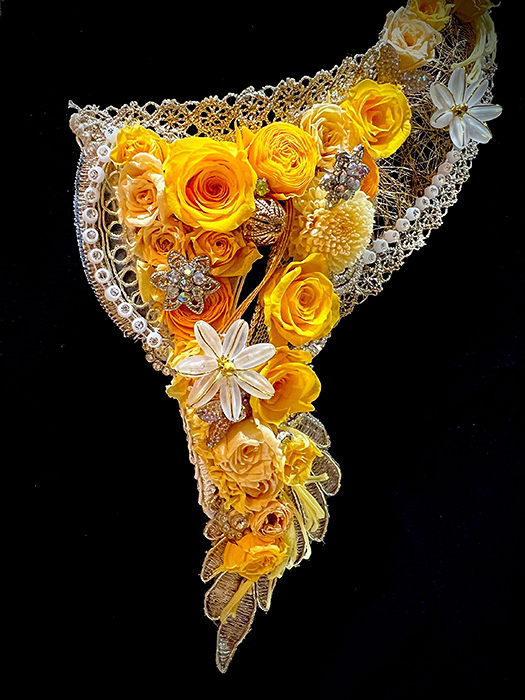 毎回変わるテーマは花の枠にとどまらず、プリザーブドフラワーの新しい可能性を常に探求しています。