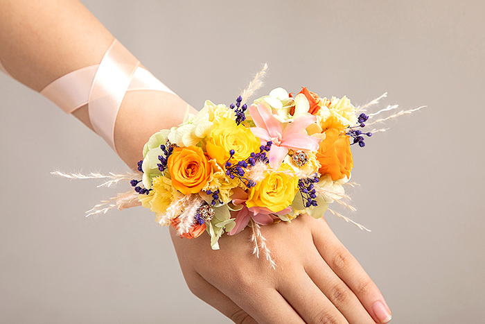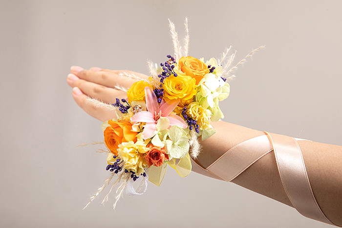 ピッコラブロッサムローズ、チューベローズ、カーネーション、ファイングラスドライ、ブルーム、アンデスアジサイ