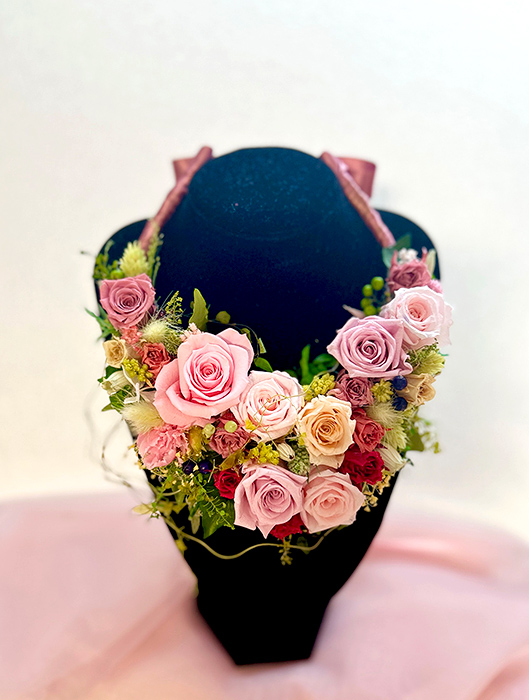 毎回変わるテーマは花の枠にとどまらず、プリザーブドフラワーの新しい可能性を常に探求しています。