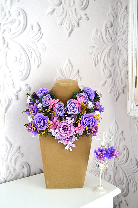 毎回変わるテーマは花の枠にとどまらず、プリザーブドフラワーの新しい可能性を常に探求しています。