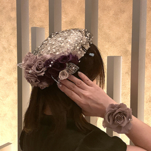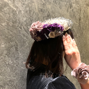 ピッコラブロッサムローズ(バイオレット)、スプレーローズ(ブラウングレー)、ダイヤモンド