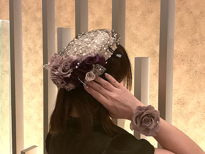 特別な日の特別な時間。いつもと違うフォーマルスタイルを更にシックでゴージャスな物へと変える作品です。