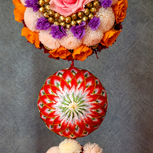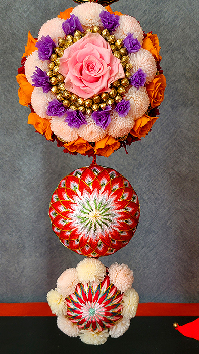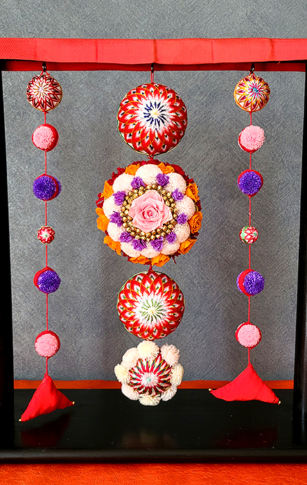 荘内藩の頃より伝わる鶴岡市の御殿鞠と隣酒田市の吊るし飾りを取り入れました。