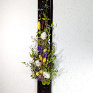アスター(パールホワイト、バイオレット)、千日紅、ポアプランツ(黄・紫)