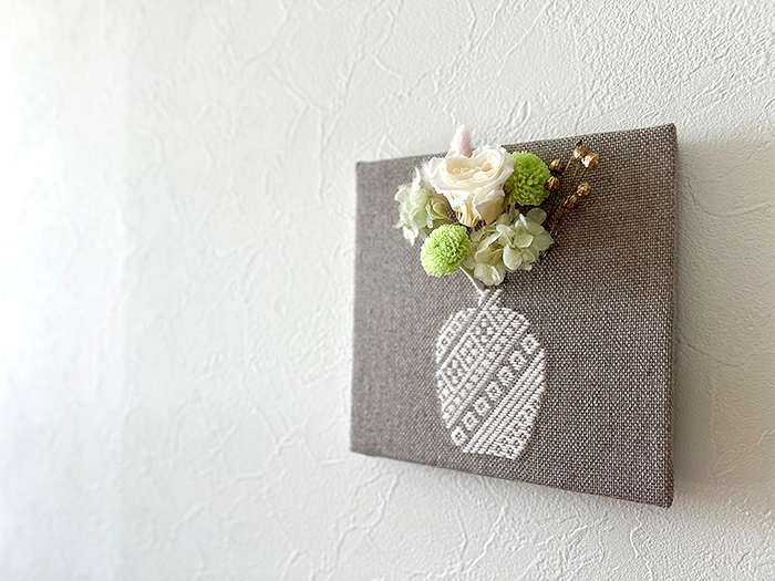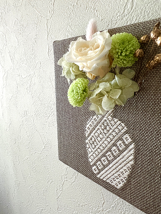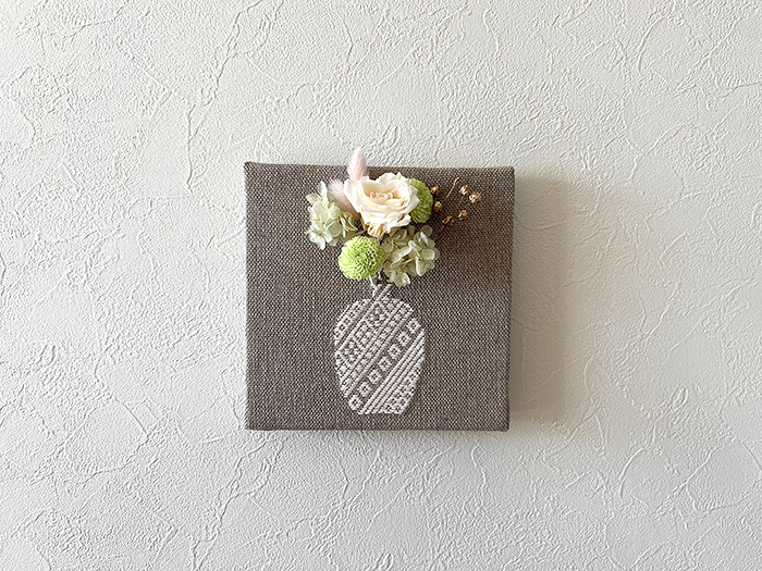 日本の伝統刺し子「こぎん刺し」の技法を用い、壺を模りました。