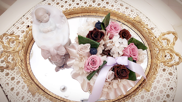 毎回変わるテーマは花の枠にとどまらず、プリザーブドフラワーの可能性を常に探求しています。