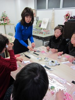 青木悦子エステルフラワーデザインスタジオ、青木悦子先生が、気仙沼市の仮設住宅にてプリザーブドフラワー教室を開催しました。