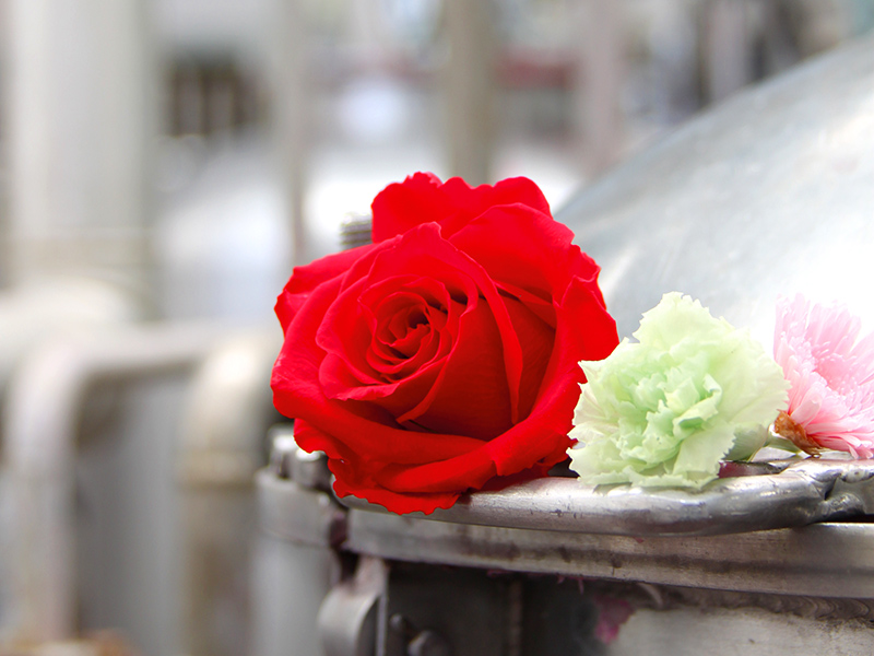 プリザーブド加工に入る前に、大きさ・鮮度・形など、たくさんのチェック項目を一輪一輪確認し、規格に当てはまる花を選別します。