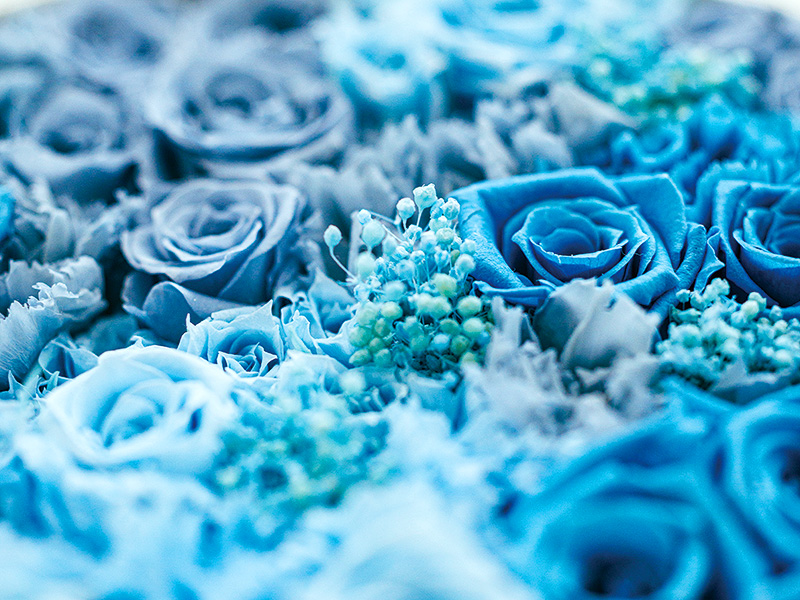 淡いブルーを合わせると、穏やかな世界観を守りつつクールな感覚も加わります。